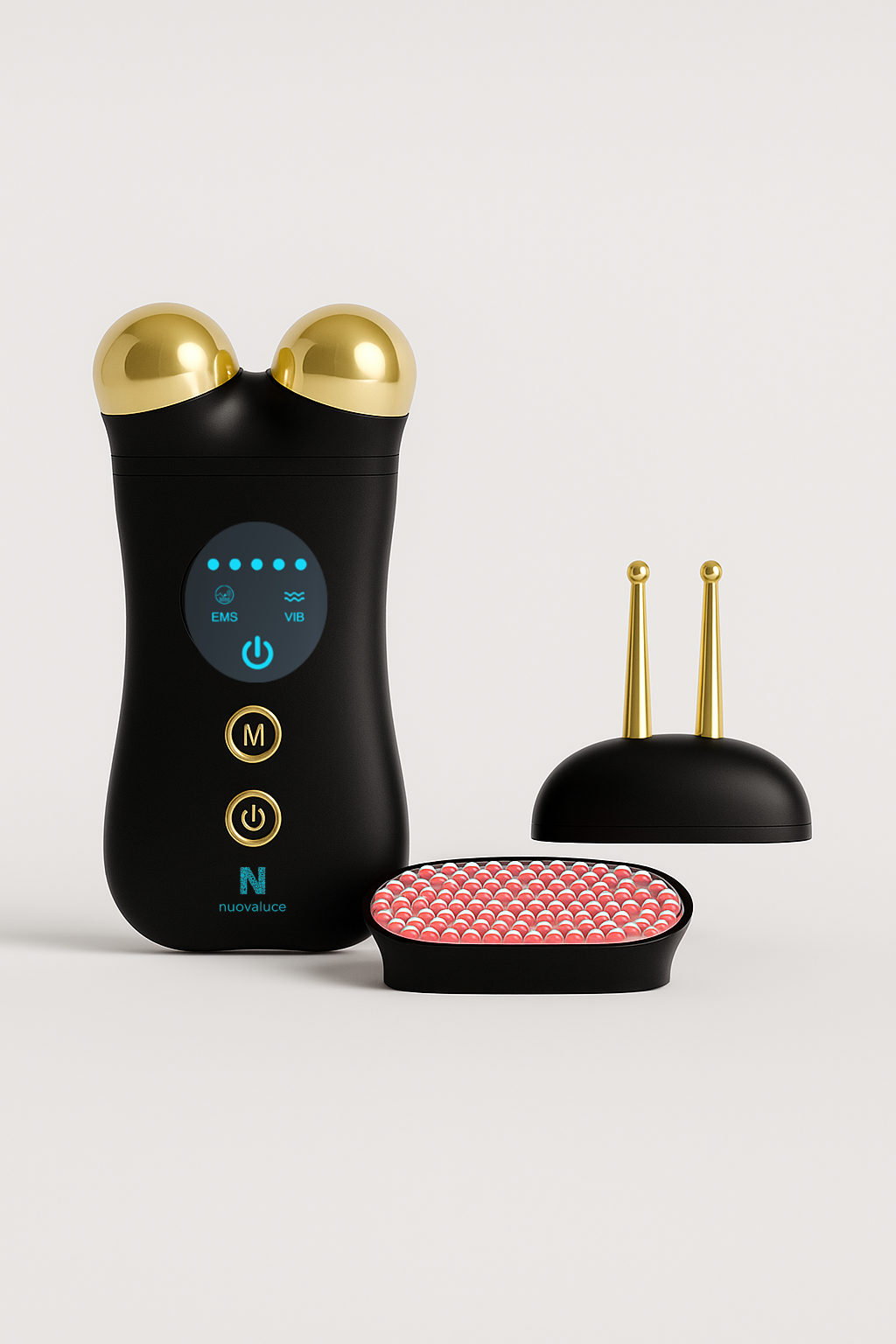 Experience the next generation in non-invasive skincare. The Nuovaluce Anti Aging Device MAX combines advanced microcurrent, red light, and vibration therapy to visibly lift, tone, and rejuvenate your skin—no needles, no downtime.