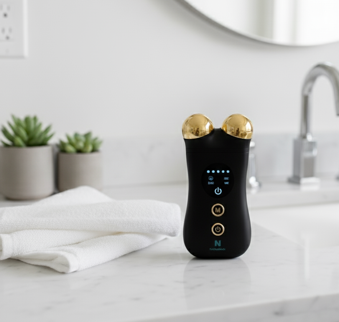 Nuovaluce Anti Aging Device Combines the power of microcurrent treatment and red photon light therapy to reduce the signs of aging, a perfect pairing of science and technology.