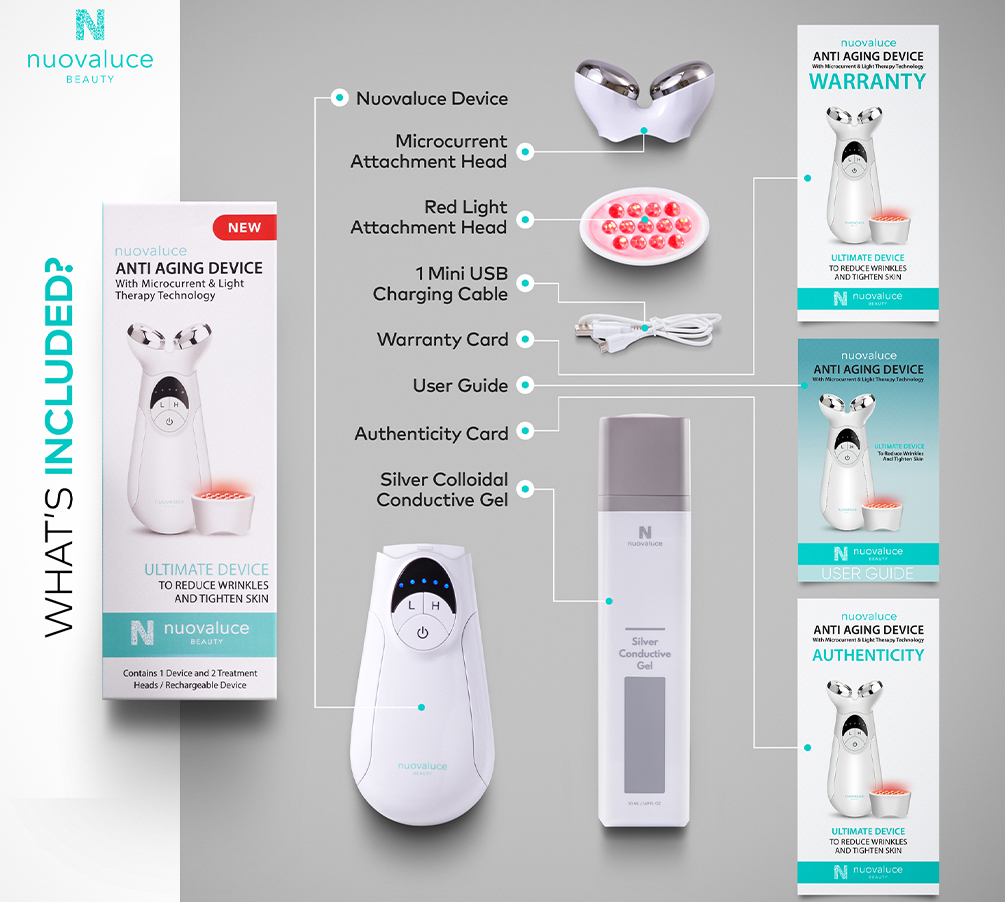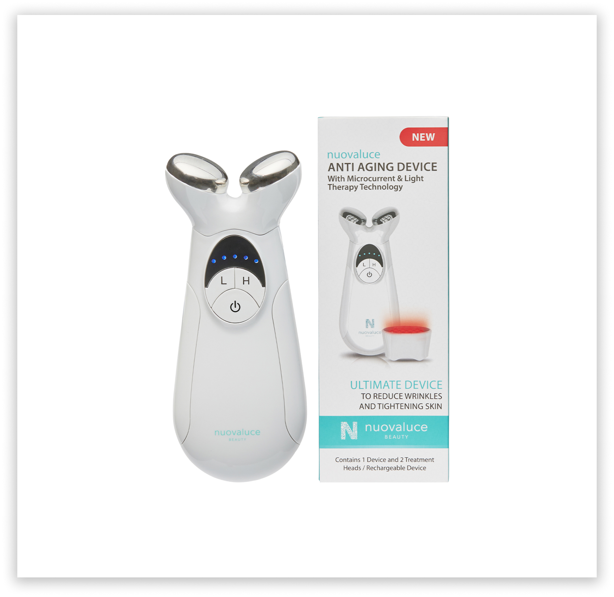 Nuovaluce Anti Aging Device combines the power of Microcurrent treatment and red photon light therapy to reduce the signs of aging, a perfect pairing of science and technology. Fine lines and wrinkles are smoothed away as healing collagen production is increased and skin is firmer, smoother and more radiant. Nuovaluce Anti Aging Device puts the power of light and Microcurrent technology into your hands in an ergonomically designed hand held device that stimulates deep levels of the dermis to create healthy cells and increase blood flow to your skin. The results are nothing short of amazing!!