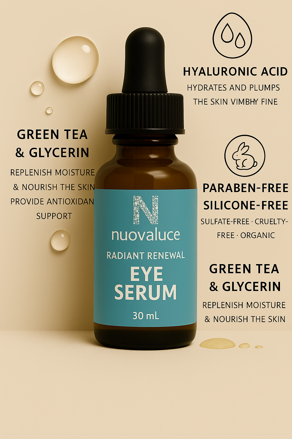 The Nuovaluce Radiant Renewal Eye Serum is suitable for all skin types, including sensitive skin.